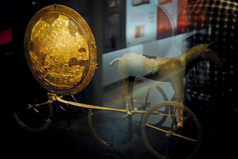 The most famous museum exhibit - the Chariot of the Sun datituetsya about the same age. This bronze-gilt statue of 60 cm length. It depicts a horse harnessed to a chariot in the form of the solar disk. It is likely that the sculpture had a religious significance.
